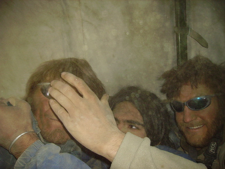 Sur le toit du camion, port de lunette polhylarisante obligatoire